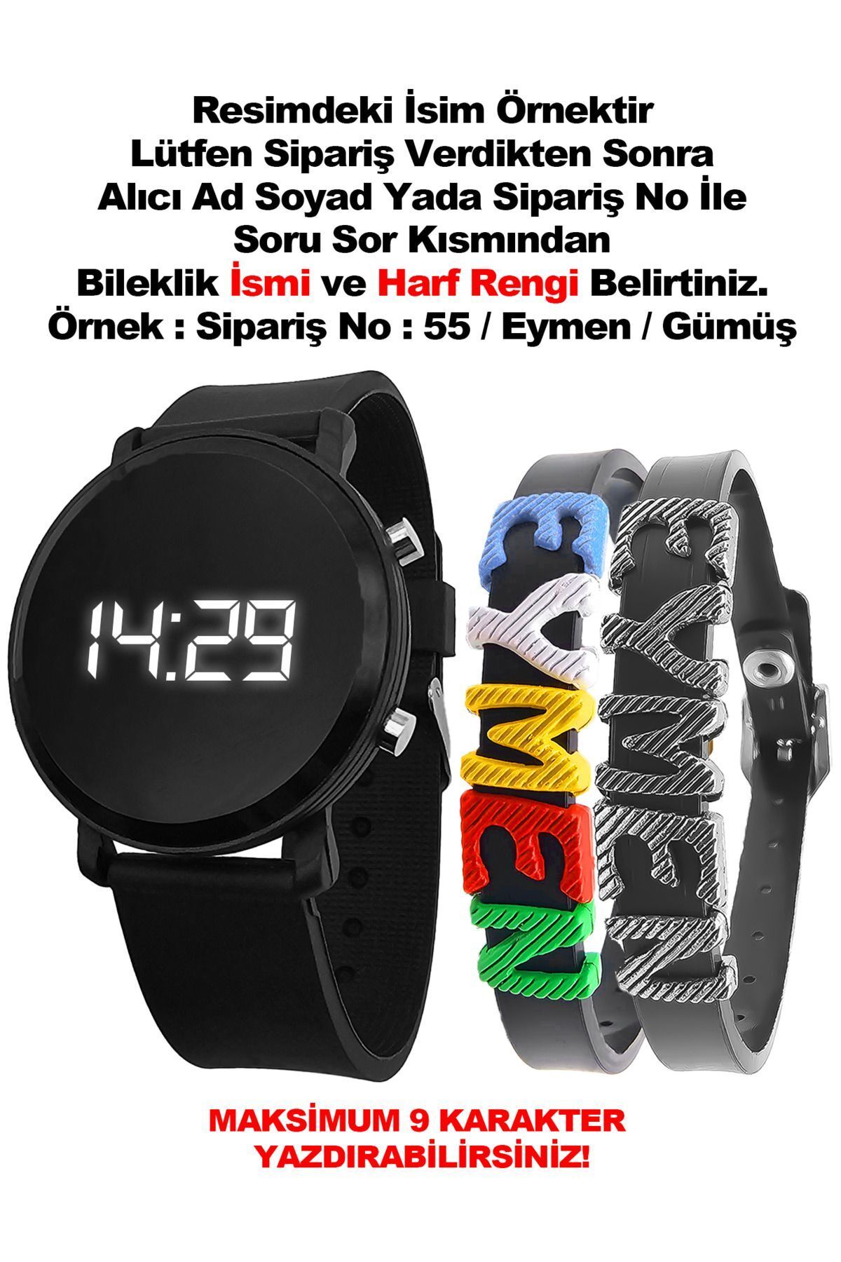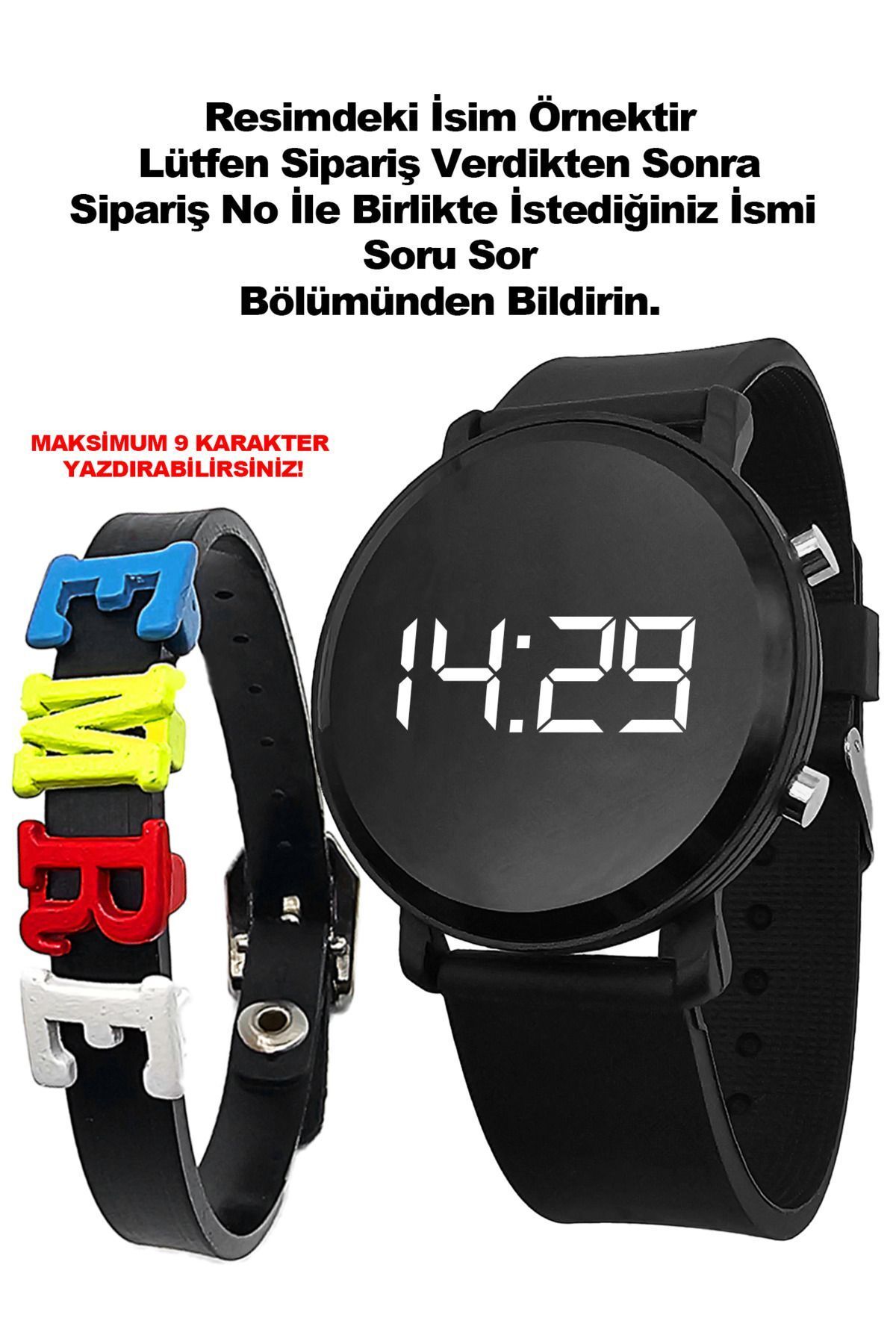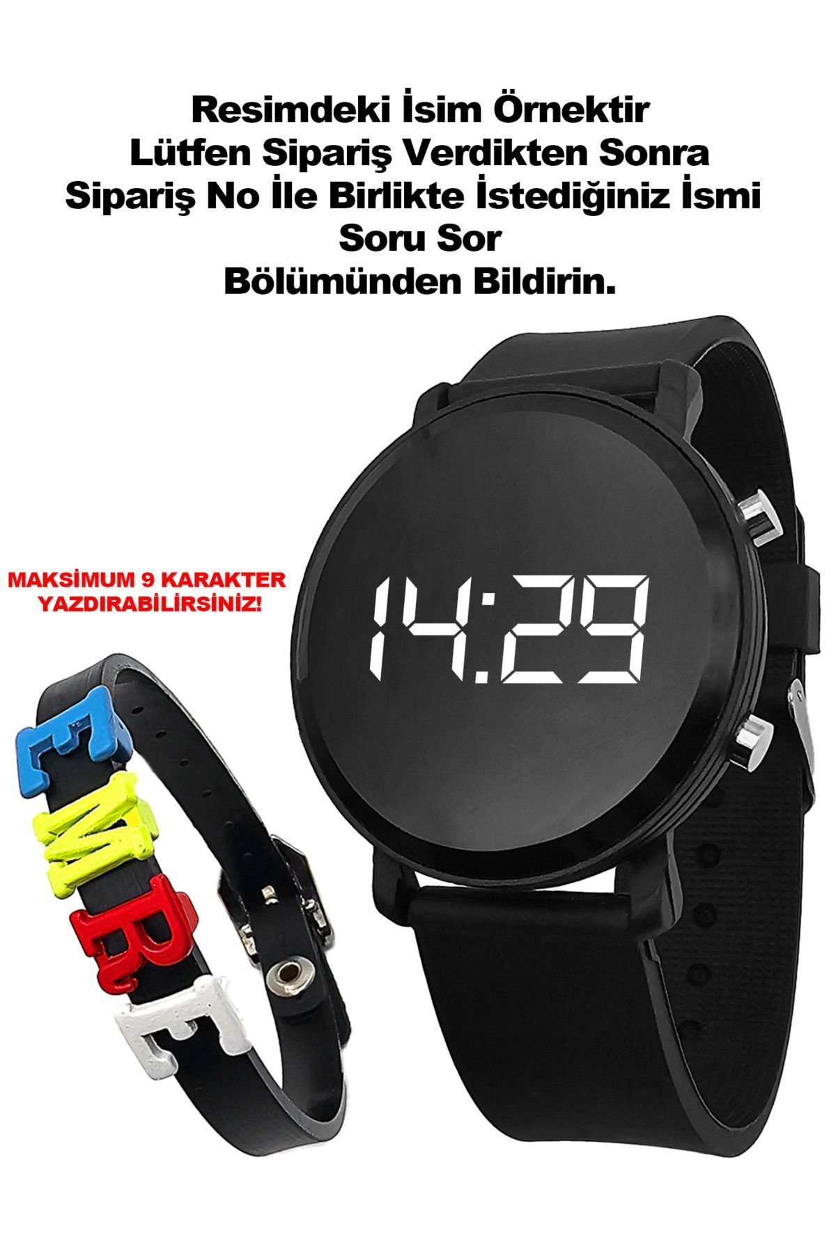 Günlük Kullanımda El Yüz Yıkama Sıçrama Türü Hafif Su Temasına Dayanıklıdır. ; Bileklik Maksimum 9 karakter içerir . Yazılmasını İstediğiniz İsmi Ürün Soruları veya Sipariş Soruları Bölümünden Sipariş Numarası ile birlikte ( Teslimat Numarası Değil ) sipariş verdikten hemen sonra bildirmeniz gerekmektedir. ÖRNEK : Sipariş No: 313488456 İsim : Emre Bildirim yapılmayan siparişlerde Boş İsimsiz bileklik gönderilir. Saat Kutusunda Hediye Paketi ile gönderilir. ;